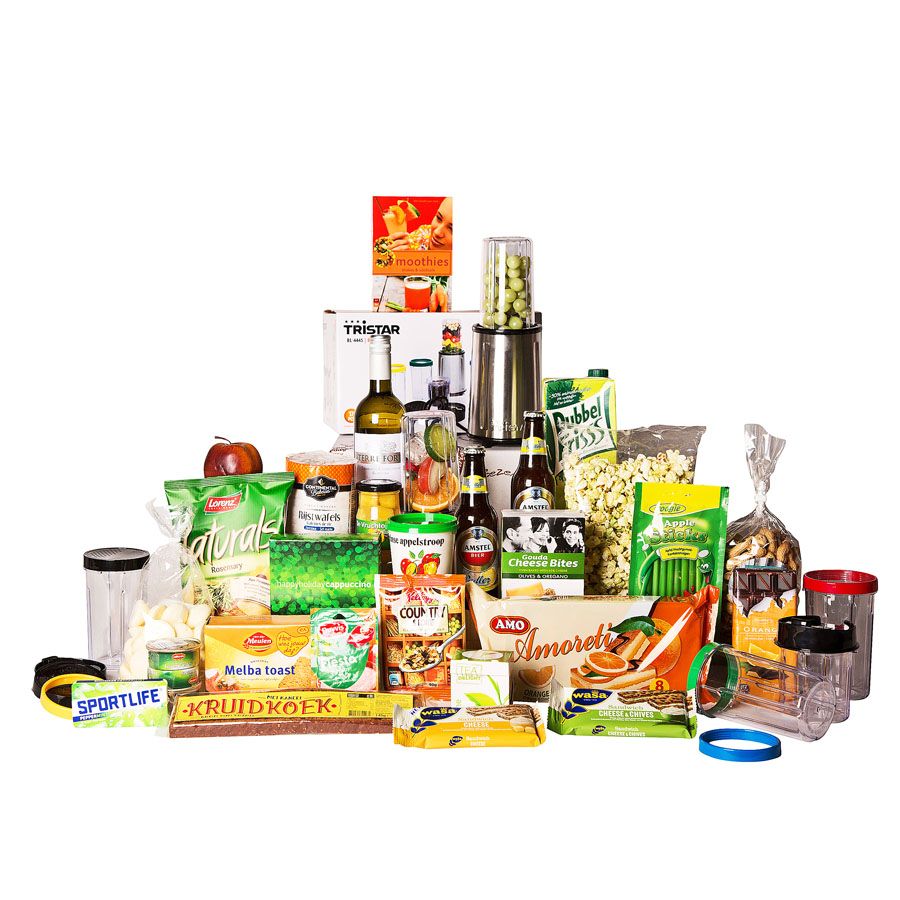 Dit frisse pakket is een feest om te ontvangen. Allerlei lekkere producten om de hele dag door van te genieten. En met de prachtige 17-delige blender van Tristar maakt u in een handomdraai heerlijke smoothies die u vervolgens gemakkelijk mee kunt nemen in één van de handige bekers. Maar u kunt ook lekkere shakes voorbereiden en bewaren in de koelkast. Van dit pakket zal de ontvanger nog heel lang genieten!