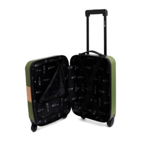 Deze duurzame trolley levert een bijdrage aan de strijd tegen de plastic soep. Zo zijn er in deze handbagage trolley zijn maar liefst 30 PET flessen verwerkt. De trolley is voorzien van vier stevige stille spinning wielen, een uitschuifbare trekstangen een stevig draaghengsel aan de bovenzijde. De net afgewerkte binnenzijde van de trolley is opgedeeld in een hoofd- en ritsvak compartiment. In het hoofdcompartiment zijn dubbele buckle riemen aangebracht om kleding in positie te houden tijdens dereis. Het rits compartiment biedt ruimte om kleinere producten te vervoeren en op hun plaats te houden.
