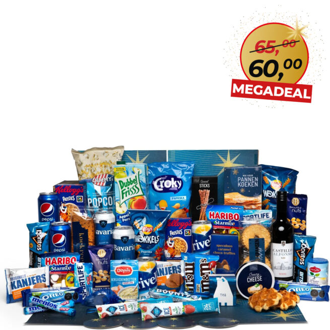 Gezellig samen de feestdagen doorbrengen, dat is toch waar Kerst en Oud en Nieuw voor staan. En met dit pakket zult u niets te kort komen want er is aan iedereen gedacht. Oud en jong, man of vrouw. Voor iedereen is er wel iets lekkers in dit bomvolleblauwe kerstpakket.