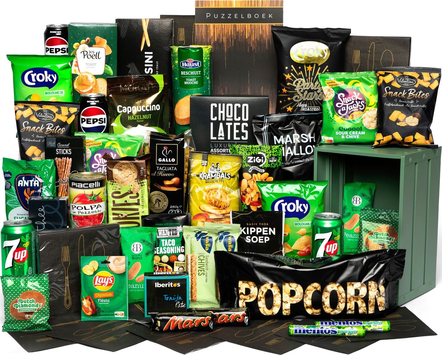 Een smulpartij voor het hele gezin. Heel veel lekkere artikelen waarmee je makkelijk een dag kunt vullen. Aan ieders wil is gedacht, zowel jong als oud. Dit rijk gevulde a-merken kerstpakket komt goed van pas tijdens de feestdagen. In de trendy metalen kist kunt u van alles opbergen. Super handig en leuk. En het puzzelboek is leuk voor jong en oud.