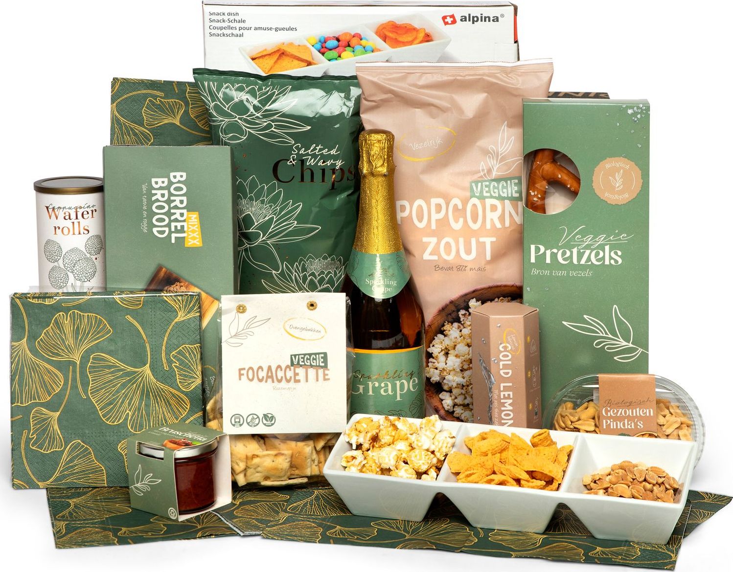 Met dit verantwoorde en rijk gevulde kerstpakket duurzaam geef je iets lekkers en iets goeds. Want van elk Pure product uit dit pakket zal € 0,10 afgedragen worden aan de Voedselbank. De trendy snackschaal van Alpina is super handig en heeft 3 bakjes. Dat is verantwoord serveren!