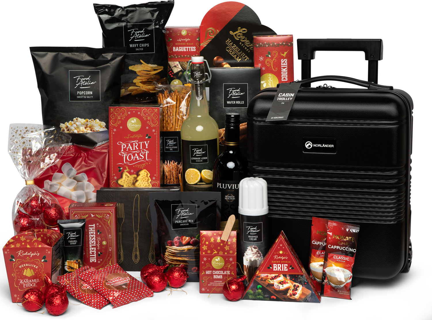 Deze feestelijke cadeauverzameling is ideaal voor het brengen van warmte en vreugde tijdens speciale gelegenheden. De set biedt een overvloed aan lekkernijen, variërend van verrukkelijke snacks tot heerlijke dranken, allemaal stijlvol gepresenteerd in een chique, functionele kofferset. Perfect voor mensen die graag luxe en gemak combineren, deze collectie belooft een onvergetelijke ervaring. Of het nu gaat om een bedrijfsuitje, familiefeest of een intiem samenzijn, met deze set creëer je een memorabel moment vol genot en gezelligheid.