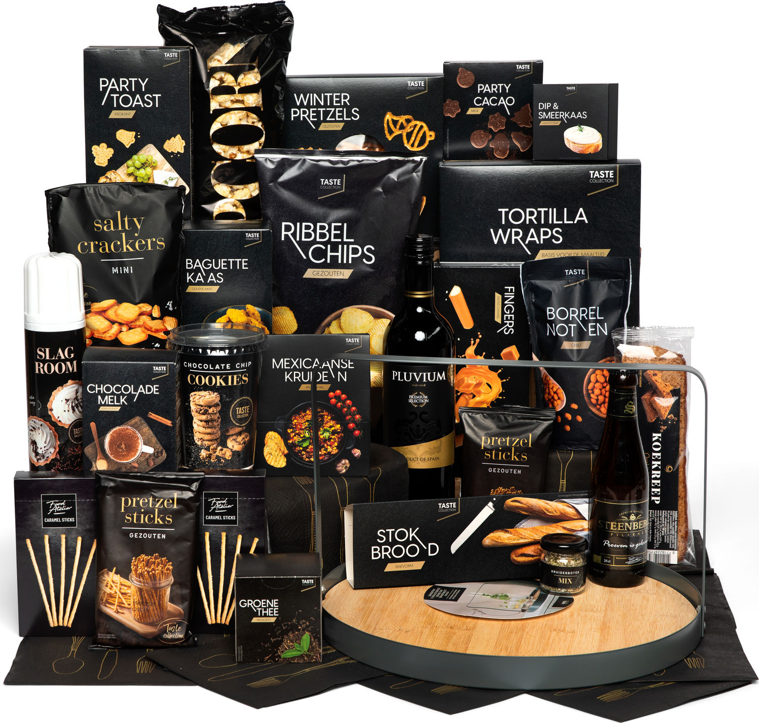 Dat wordt uitpakken met kerst. Alles voor een avond gezelligheid hebben we ingepakt. En alleen de lekkerste producten zijn geselecteerd. Een drankje en een hapje, geserveerd op de trendy serveerschaal. De fraaie serveerschaal met handvat is een blikvanger op iedere tafel, want je kunt hem naast hapjes ook gebruiken voor kaarsen, windlichten of fruit.