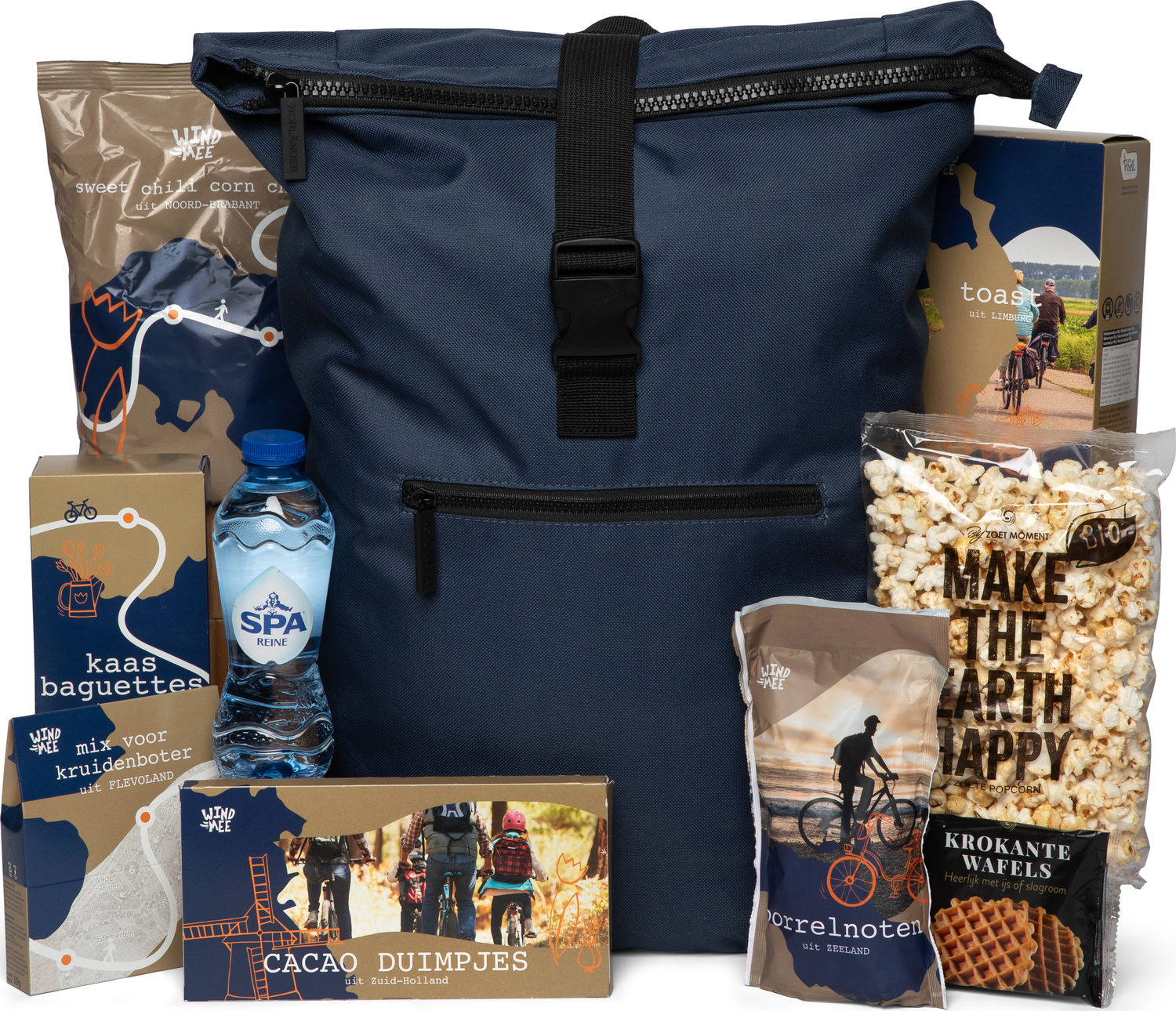 Deze veelzijdige rugtas combineert functionaliteit en stijl, perfect voor avontuurlijke uitjes of dagelijks gebruik. De robuuste constructie en moderne uitstraling maken het een ideale keuze voor iedereen die op zoek is naar een betrouwbare metgezel voor onderweg. De inhoud biedt een heerlijke variatie aan snacks en drankjes, speciaal samengesteld om uw energie tijdens activiteiten op peil te houden. Of u nu een stevige wandeling maakt of een ontspannend dagje uit plant, deze tas met praktische opbergruimte en verrukkelijke lekkernijen zorgt dat u goed voorbereid en tevreden van uw avontuur kunt genieten.