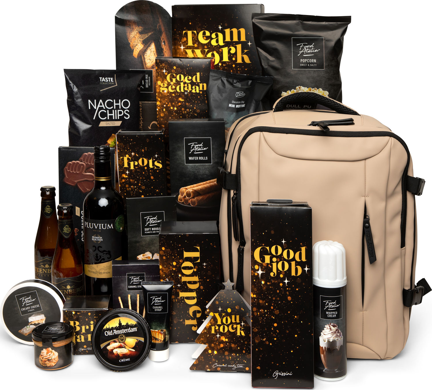 Ontdek de perfecte verrassing voor iedere gelegenheid met dit zorgvuldig samengestelde cadeaupakket. Een stijlvolle tas gecombineerd met een scala aan smakelijke delicatessen en verrassingen zorgt voor een indrukwekkende presentatie. Ideaal voor liefhebbers van heerlijk genieten en veelzijdige kwaliteit, dit pakket biedt een perfecte combinatie van smaak en stijl. Of het nu gaat om een viering, dankbetuiging, of gewoon een speciaal moment, deze verzameling van lekkernijen zal zeker in de smaak vallen. Laat je verrassen door de verfijnde details en de hoogwaardige presentatie die elke ontvanger zal waarderen.