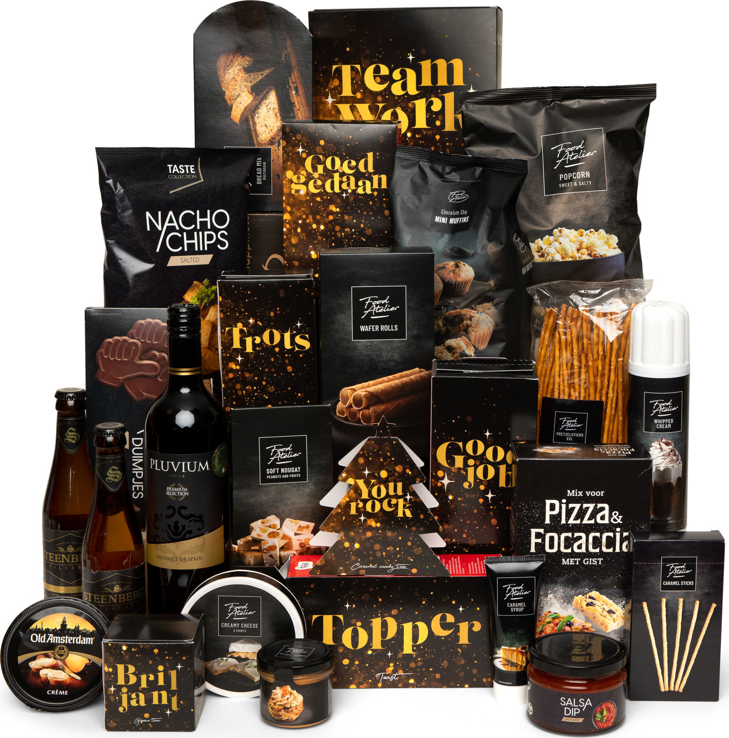 De cadeaubox is een zorgvuldig samengestelde selectie van hoogwaardige lekkernijen en dranken, perfect voor culinaire genieters. Met een diverse mix van hartige en zoete smaken biedt deze collectie iets voor iedere gelegenheid. Van knapperige snackstot rijke chocolades, elk item in de box is gekozen voor zijn uitstekende kwaliteit en smaakbeleving. Ideaal om te delen tijdens feestelijke bijeenkomsten of als geschenk voor iemand die van smaakvolle verrukkingen houdt. Ontdek een combinatie van traditionele en moderne smaken die zorgen voor een onvergetelijke ervaring. Perfect als traktatie of luxe cadeau.
