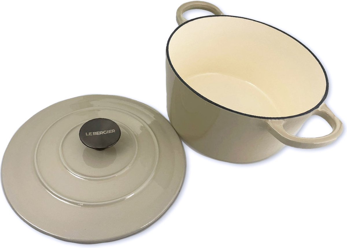 - Le Bergier Braadpan Gietijzer Rond Taupe 3,9L.