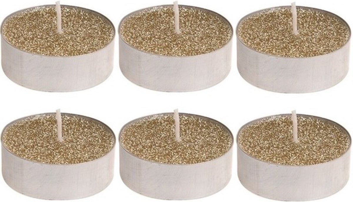 - Waxinelichtjes | Glitter goud | 6 stuks