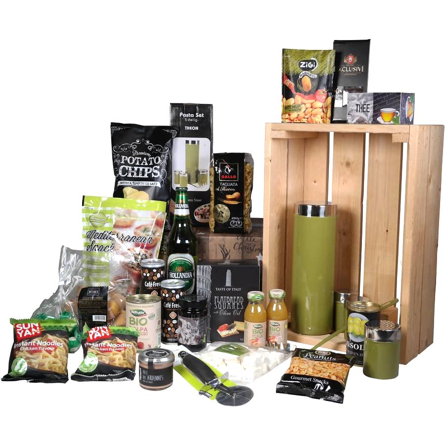 Wij laten ons niet kisten, want u verdient alleen het beste. Een heerlijk kerstpakket met zorg voor u samengesteld.