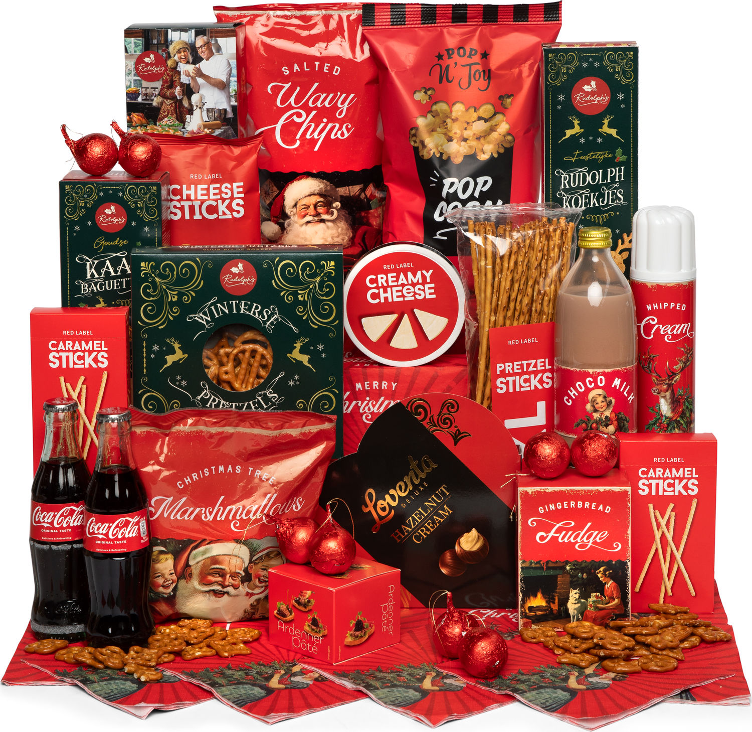Vier de gezelligste tijd van het jaar met dit sfeervolle rode kerstpakket. Versier je kerstboom met de chocoladeboomhangers, verwen jezelf met chocomel met slagroom en heerlijke pralines en kom helemaal tot rust. Dit sfeervolle kerstpakket tovert vanzelf een glimlach op je gezicht. De QR code op de Rudolph verpakkingen verwijst naar een pagina vol tips en instructies van meesterkok Rudolph. Zo maak je thuis in een handomdraai een chef-waardige baksel.