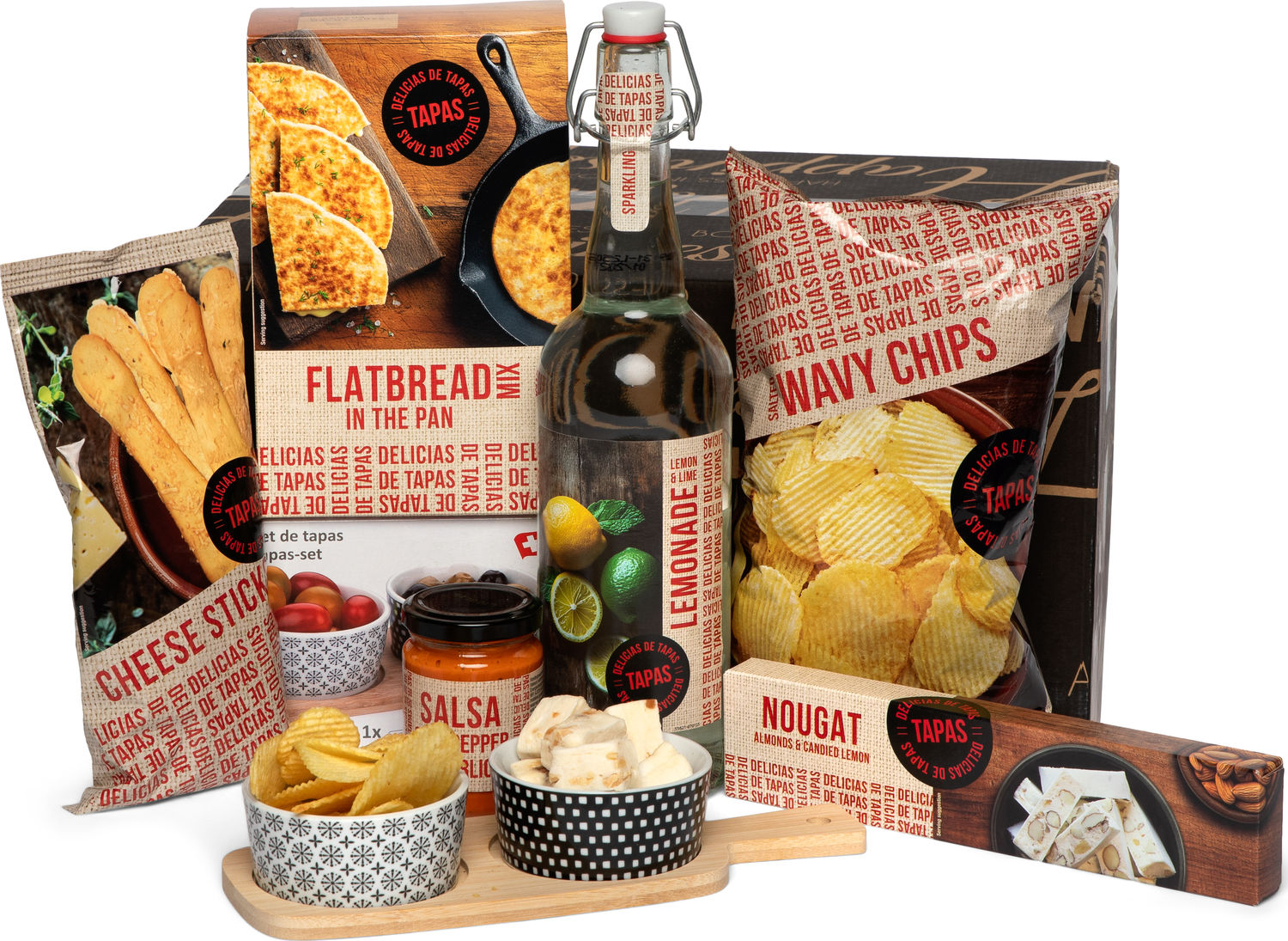 Ontdek een heerlijk tapas-geschenk dat perfect is voor elke gelegenheid. Deze zorgvuldig samengestelde set bevat een selectie van smakelijke lekkernijen die een authentieke mediterrane sfeer naar jouw tafel brengen. Geniet van knapperige snacks en rijke smaken die zorgen voor een onvergetelijke eetervaring. Ideaal als cadeau voor fijnproevers of om zelf te genieten tijdens een gezellige avond met vrienden en familie. Deze veelzijdige verzameling biedt iets voor iedereen en is een geweldige manier om de diverse smaken van tapas te verkennen. Voeg een vleugje culinaire elegantie toe aan je eetmomenten met deze voortreffelijke selectie.