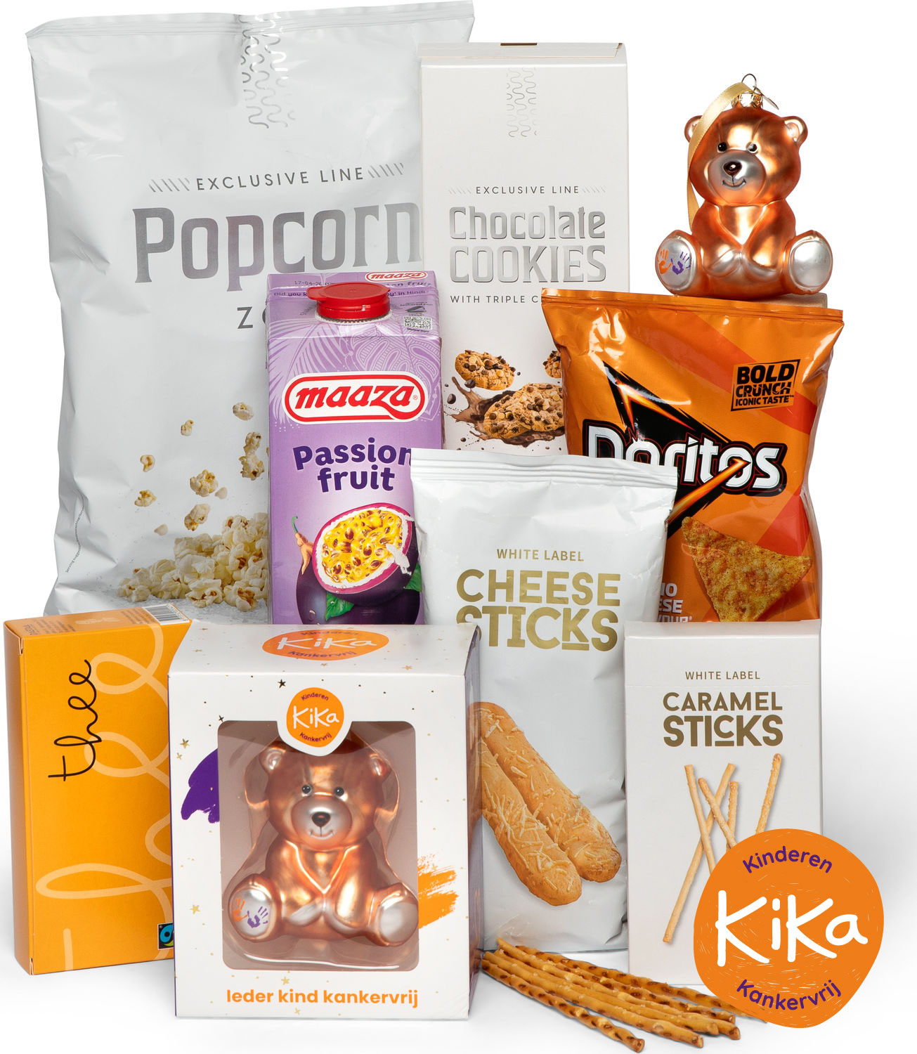 Wij bieden in samenwerking met KiKa de mogelijkheid om een KiKa kerstkaart toe te voegen aan het kerstpakket. Van iedere kaart gaat er een bijdrage van 1 euro naar KiKa. Wij kunnen deze kaarten voorzien van een persoonlijke boodschap of kerstgroet voor uw medewerkers. Er kan gekozen worden uit onderstaande 6 ontwerpen, deze kunt u tijdens het afrekenen van uw bestelling toevoegen. De persoonlijke boodschap kunt u direct in het opmerkingenveld vermelden, of dit mag later ook worden aangeleverd bij onze klantenservice.