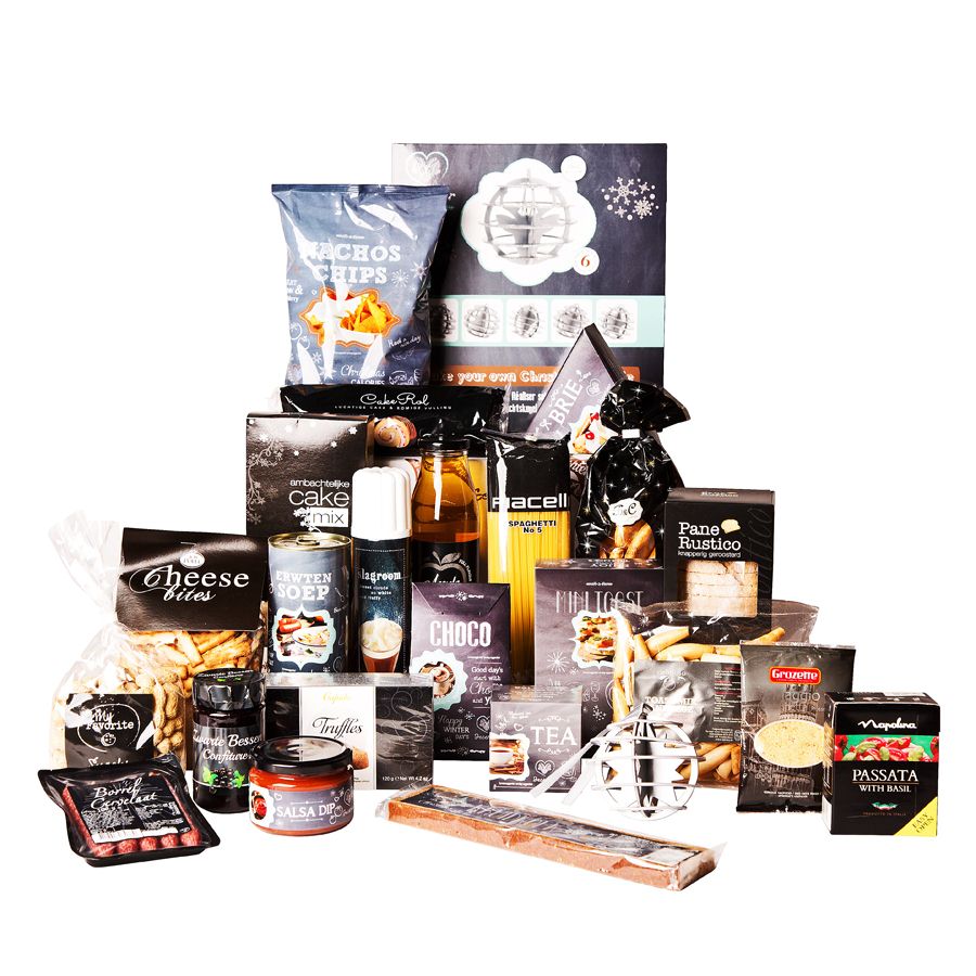 Met dit pakket maak je je eigen kersballen! Gezellig samen bezig zijn, dat is pas Kerst. Daarnaast bevat dit sfeervolle kerstpakket allerlei heerlijk producten. Van ontbijt tot lunch tot diner overal is aan gedacht. Dat wordt samen genieten deze Kerst!