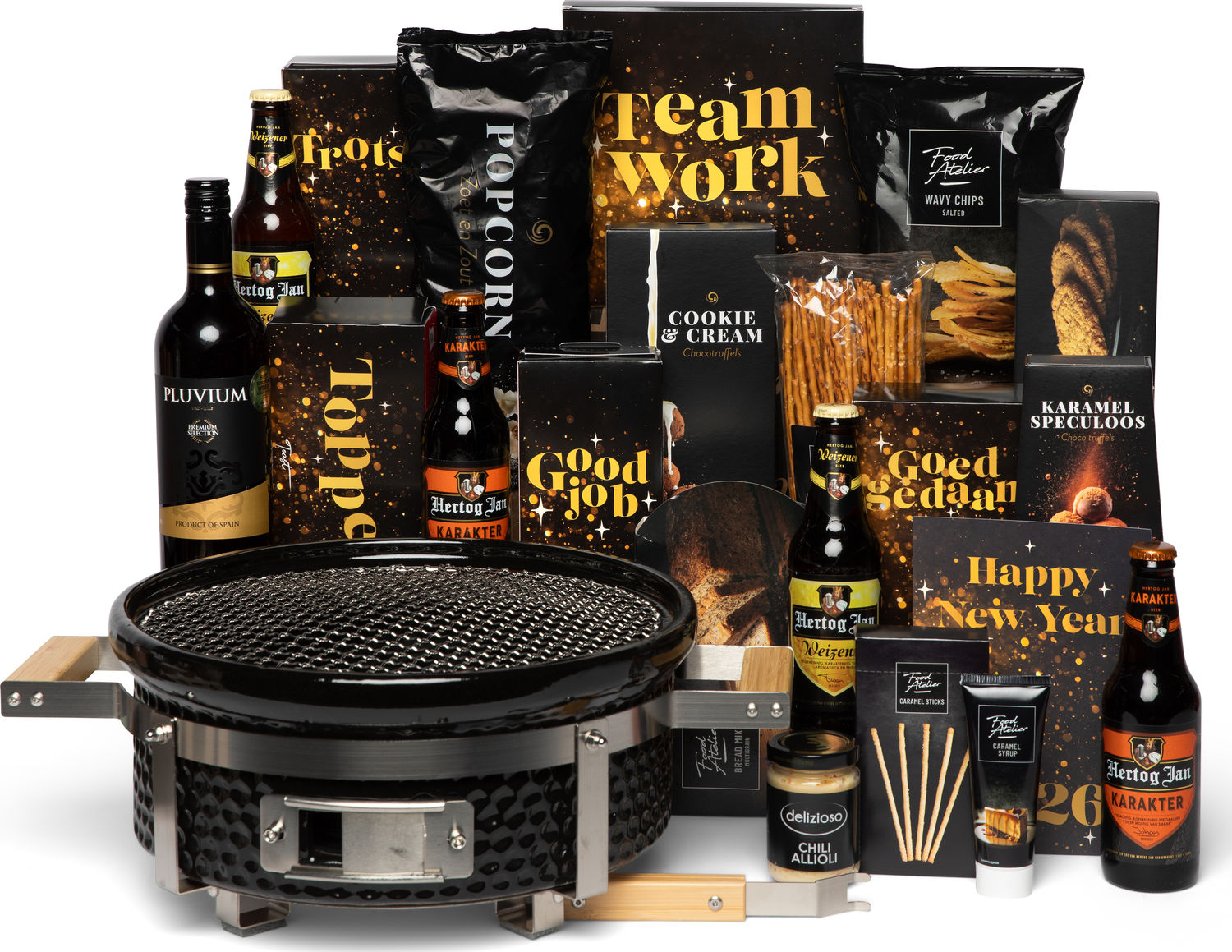 Dit luxe cadeaupakket is ideaal voor fijnproevers en feestgangers. In het pakket vind je een elegante mix van smaakvolle lekkernijen en drankjes, perfect voor een speciaal evenement of als geschenk. De stijlvolle verpakking benadrukt de premium kwaliteit van de inhoud en maakt het een aantrekkelijk cadeau-idee. Of je nu een feestje organiseert of op zoek bent naar een verfijnd cadeau, dit pakket biedt voor ieder wat wils en zorgt gegarandeerd voor een indrukwekkende presentatie. Ideaal voor het creëren van gezellige momenten met vrienden en familie.