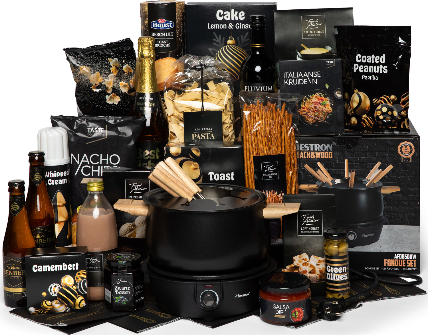 Met deze stijlvolle elektrische fonduepan van Bestron geniet je samen van een heerlijk fondue. Ideaal voor het smelten, verwarmen en warmhouden van kaas, olie, bouillon, wijn of chocolade. De pan is geschikt voor 8 personen. Alleen het uitpakken vandit rijk gevulde pakket is al een feest, verschillende lekkere artikelen die bij iedereen in de smaak zullen vallen.