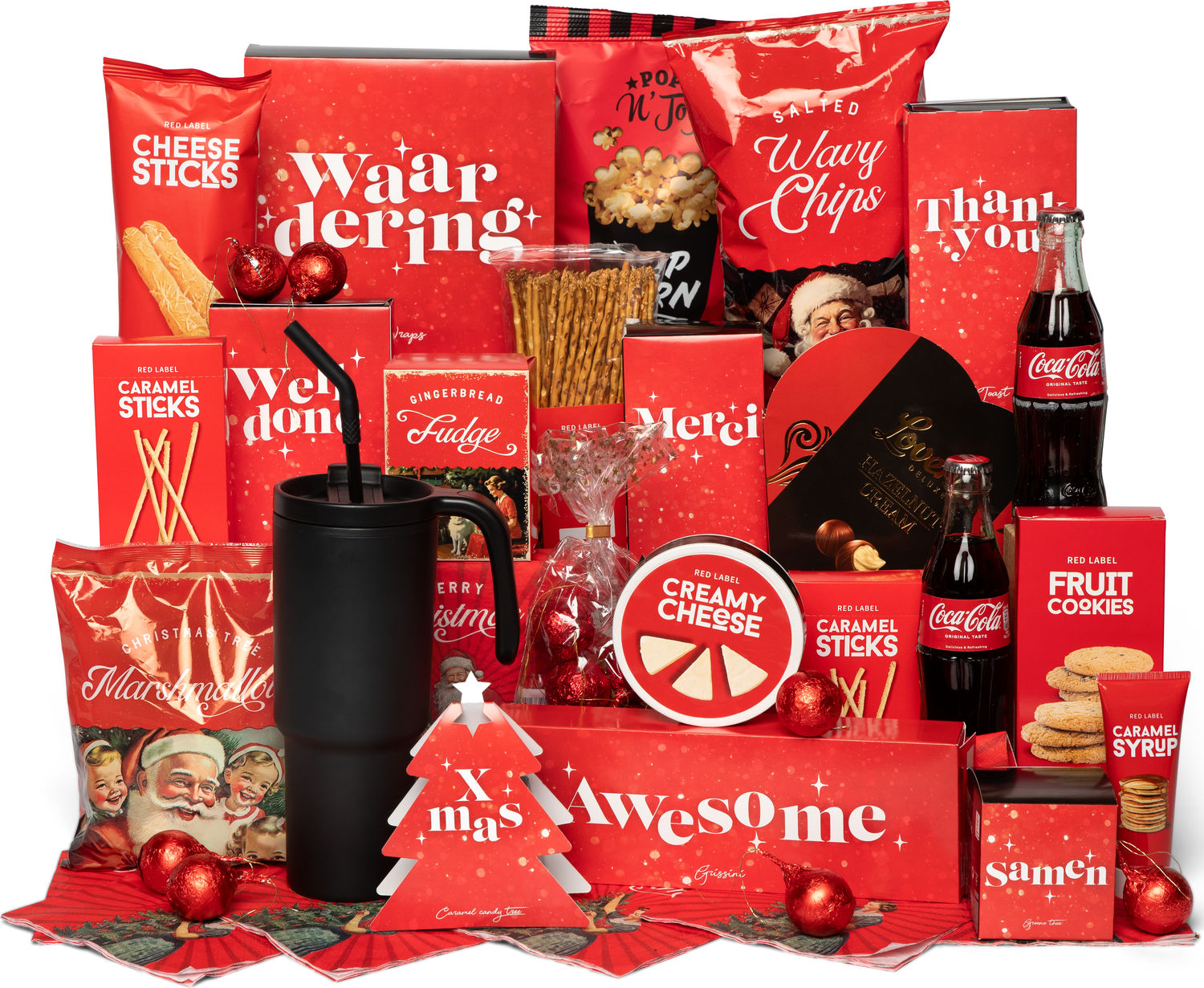 Dit feestelijke kerstpakket is de perfecte keuze voor een gezellig samenzijn tijdens de feestdagen. In stijlvolle rode tinten straalt het pakket warmte en feestelijkheid uit, ideaal om als cadeau te geven of zelf van te genieten. Het zit boordevol heerlijke lekkernijen en drankjes die ontworpen zijn om samen met vrienden en familie te delen. Of je nu knus samen wilt genieten van een filmavond of een uitgebreide kerstborrel plant, dit luxe pakket zorgt voor een onvergetelijke ervaring. Laat dit kerstpakket lichtpunt zijn tijdens de donkere dagen.