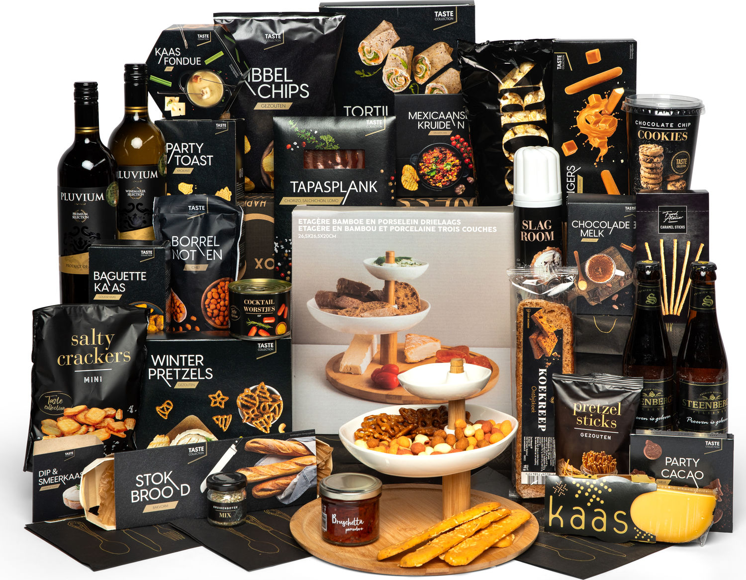 Laat tijdens de feestdagen je waardering blijken en bedank je medewerkers voor hun inzet met dit rijk gevulde kerstpakket. Serveer de hapjes op deze trendy multifunctionele etagere. Zowel zoet als hartig, met deze etagere kun je alle kanten op. Van deze eyecatcher zal de ontvanger nog lang genieten. Met dit bomvolle kerstpakket kom je de feestdagen wel door.