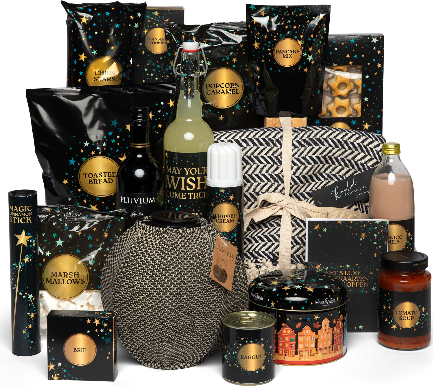 De luxe wenskaartenset uit dit Make- A-Wish kerstpakket bevat 5 wenskaarten met envelop. Van de opbrengst gaat 1 euro naar Make-a-Wish Nederland. Met deze donatie help je de liefste wens van een ziek kind te vervullen en zorg je voor magie, positiviteit en veerkracht. Of het nu een ontmoeting met een held is, een droomreis of een bijzondere ervaring, elke wens zorgt voor een blijvende herinnering die families verbinden en levens veranderd. Het plaid uit India is gemaakt van gerecycled katoen enheeft daardoor een duurzaam karakter. Leg het plaid uitgevouwen op de bank of op het bed of gebruik dit kleed om heerlijk onder te kruipen tijdens de koude winterdagen. De ronde solar lantaarn is gemaakt van geweven garen en is niet alleen stijlvol maar ook milieuvriendelijk. Overdag laadt de lantaarn op door zonlicht en in de avond zal het zorgen voor een gezellig sfeerlicht. Met het handige hengsel kun je de sfeermaker eenvoudig verplaatsen of ophangen. Dit artikel heeft een IP44 keurmerk. Ditbetekent dat LED lampspatwaterbestendig is. Met dit pakket geef je echt iets goeds. Een belangrijk deel van de opbrengst van de Wish Upon A Star producten uit jouw kerstpakket wordt gedoneerd aan Maka-A-Wish Nederland.