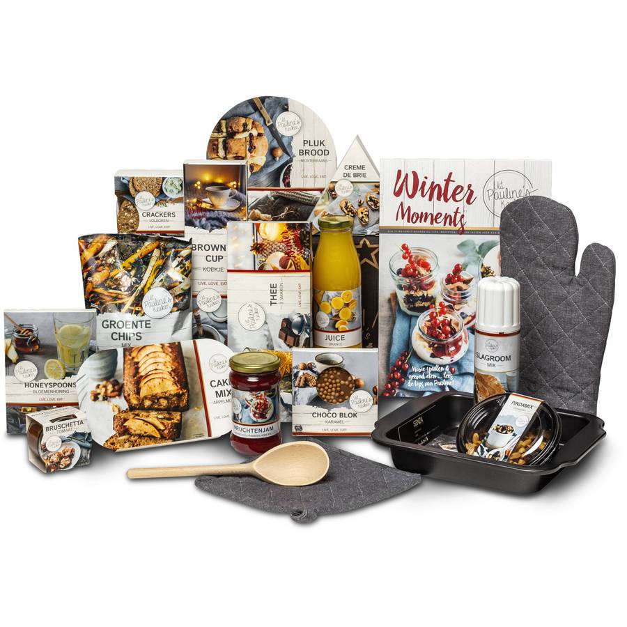 Samen met Pauline, het gezicht achter ?Uit Pauline?s Keuken?, hebben we dit sfeervolle Winter moments kerstpakket samengesteld. Pauline over haar Winter moments pakket: ?Het moet een pakket zijn voor iedereen. Vol met producten waar je blij van wordt. Die je met elkaar kunt delen en waar je samen van kunt genieten. Of je nu alleen bent, een partner of gezin hebt, ik wil met dit ?Winter Moments?-pakket iedereen dat warme gevoel bezorgen wat ik vroeger als kind had.? Naast als deze lekkernijen bevat dit pakket een Pauline kerstmagazine bomvol heerlijke recepten, leuke tips en do-it-yourselves.