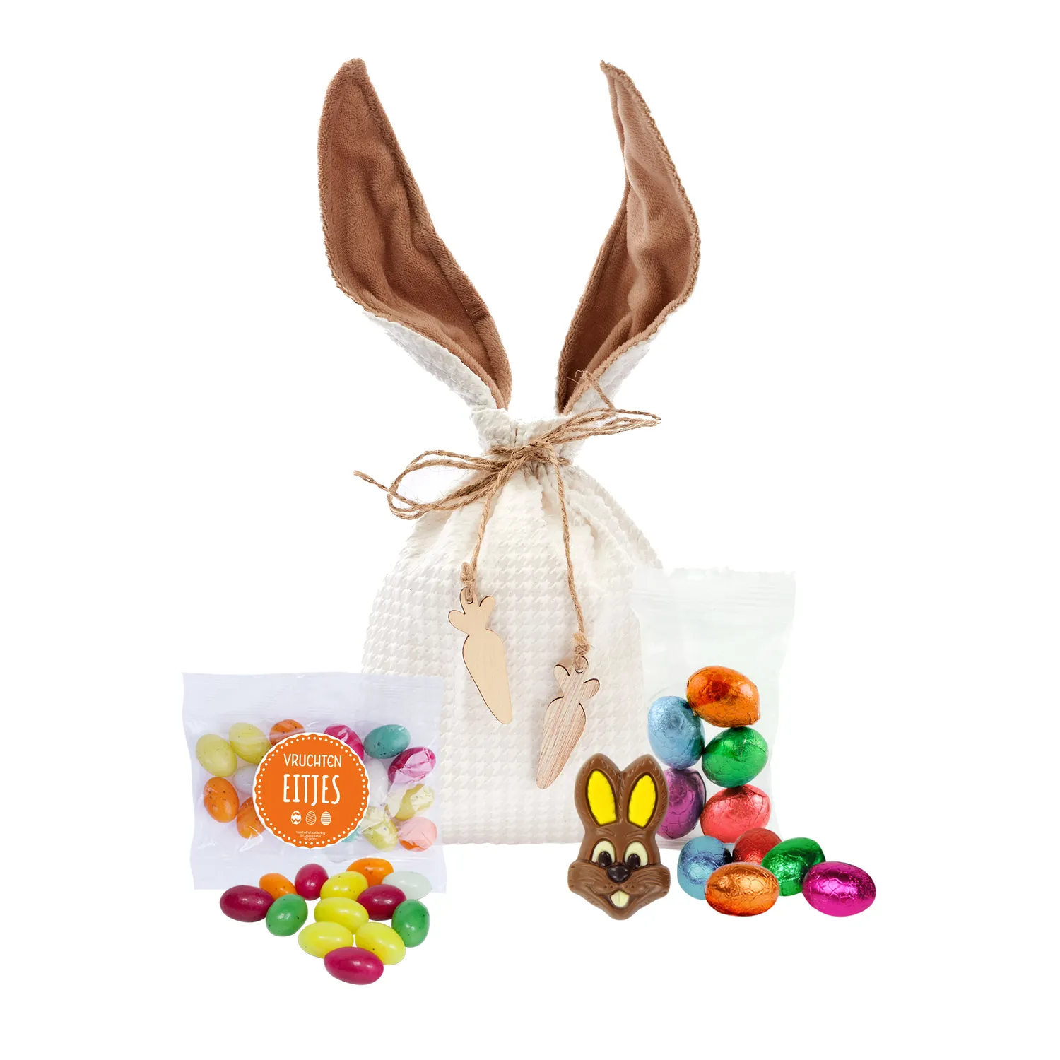 Grappig haaszakje met oren (ca. 20 x 13 cm) gevuld met: