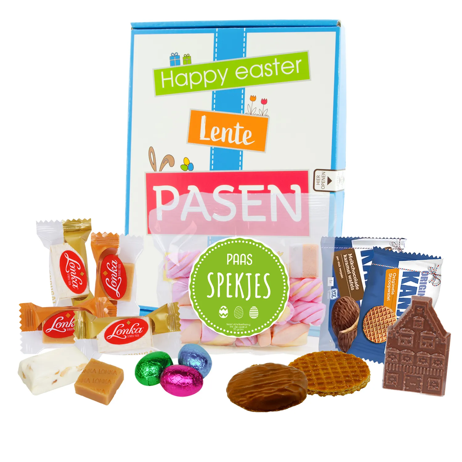 Uniek bedrukt Paas brievenbusdoosje (21,5 x 15 x 2,5 cm) gevuld met: