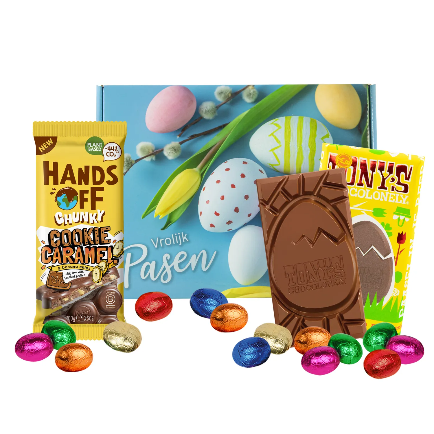 Bedrukte Paasbrievenbusdoos (24,5 x 18,5 x 2,8 cm) gevuld met: