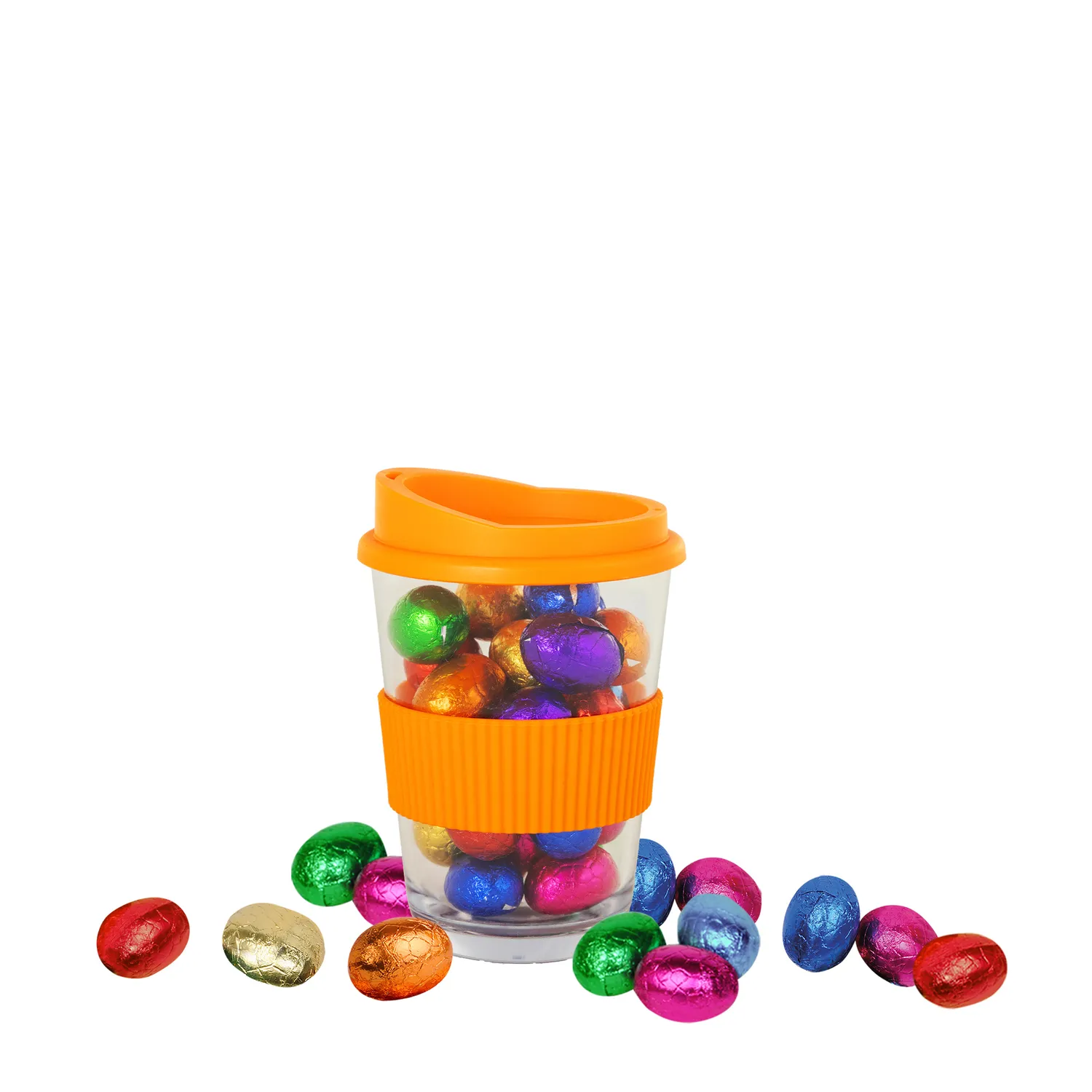 Handige oranje Americano® Cortado 300 ml beker met grip gevuld met: