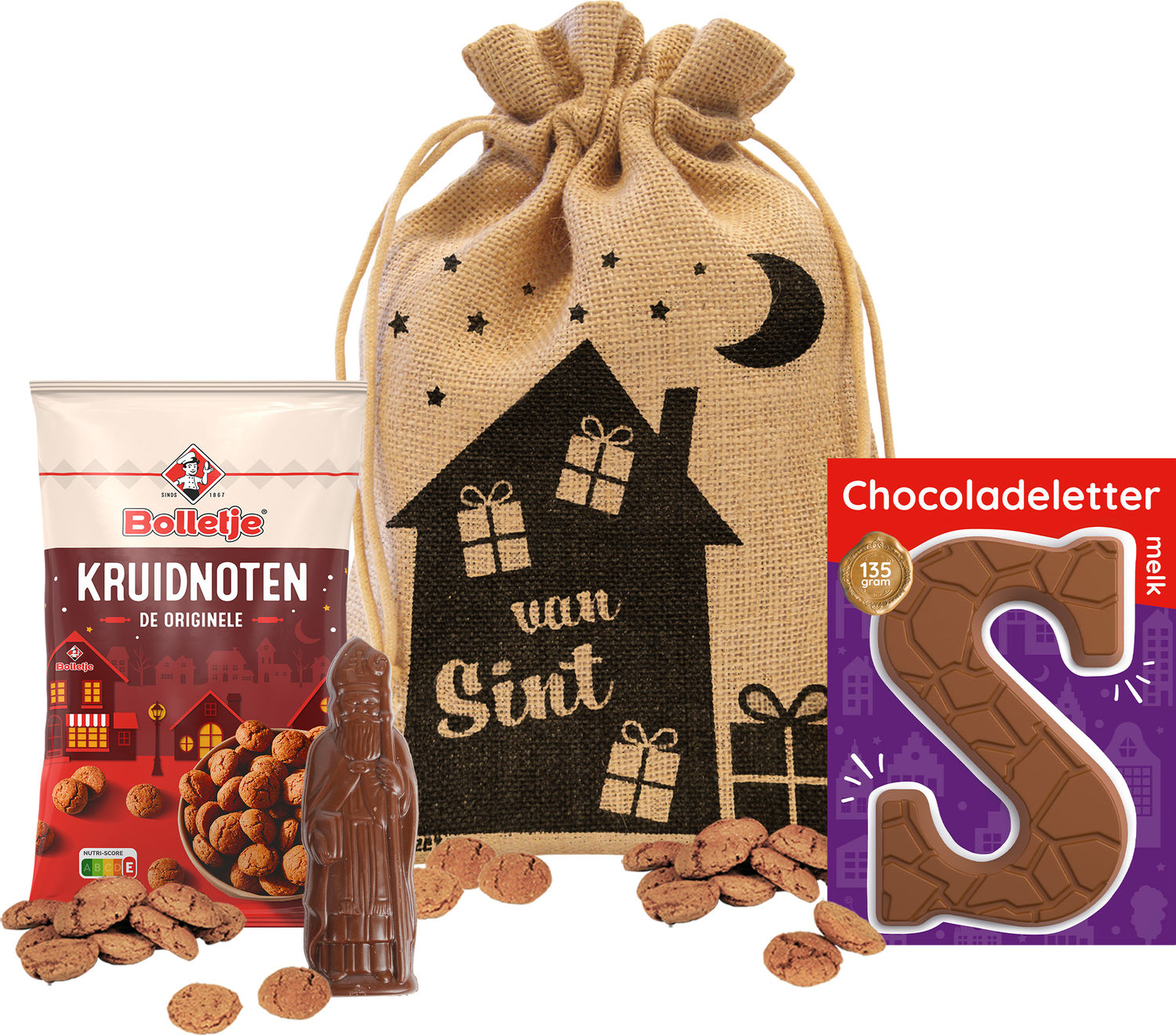 - Origineel bedrukt jute zakje (20 x 30 cm) gevuld met: