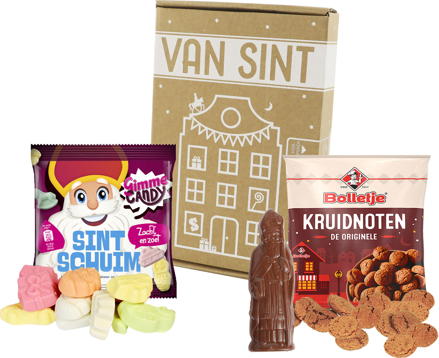 - Origineel bedrukt Sint brievenbusdoosje (19 x 12,5 x 3 cm) gevuld met:
