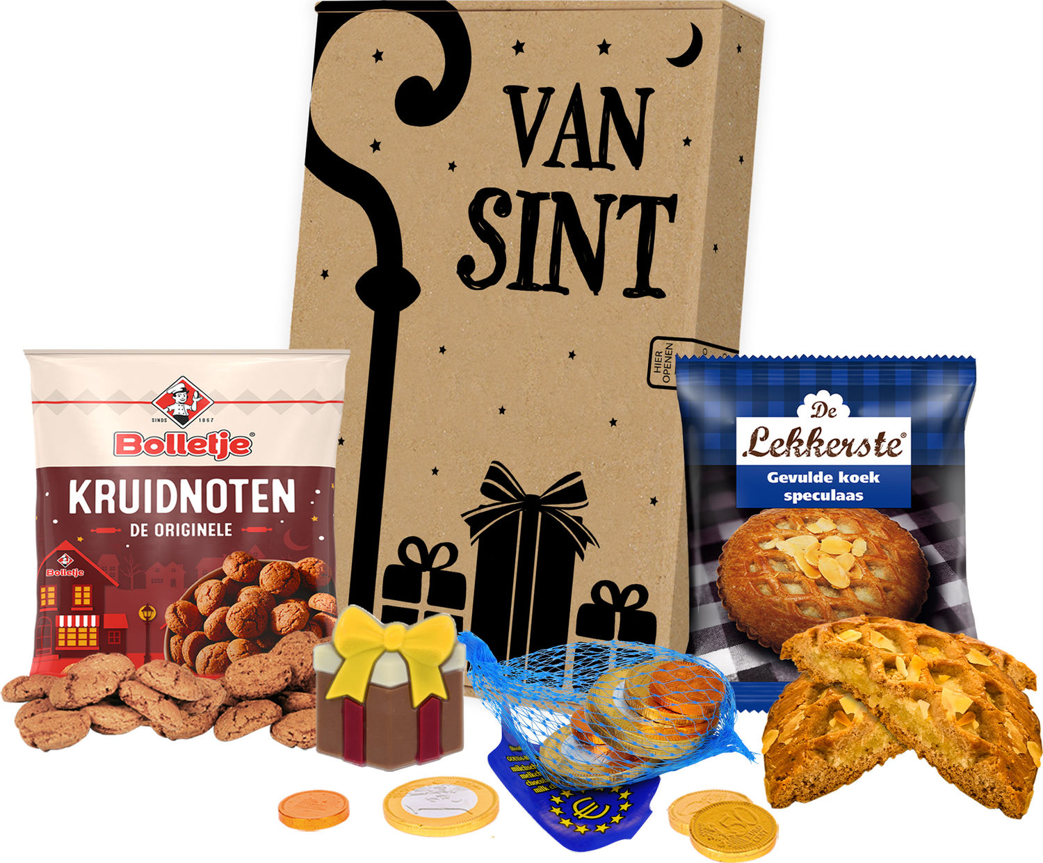 - Origineel bedrukt Sint brievenbusdoosje (21 x 15 x 2,5 cm) gevuld met: