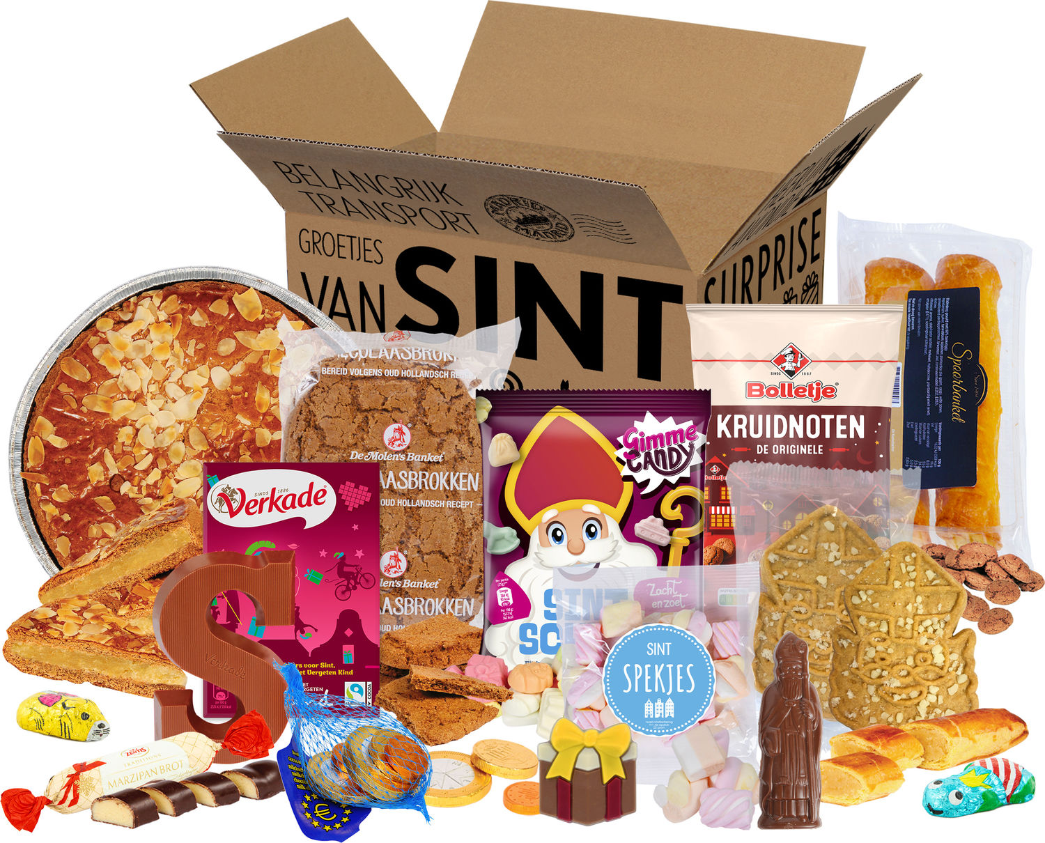 - Uniek bedrukte doos (30 x 22 x 15,5 cm) gevuld met: