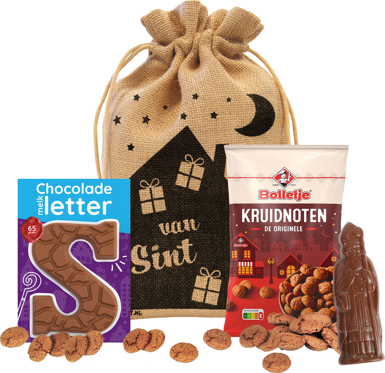 - Origineel bedrukt jute zakje (20 x 30 cm) gevuld met: