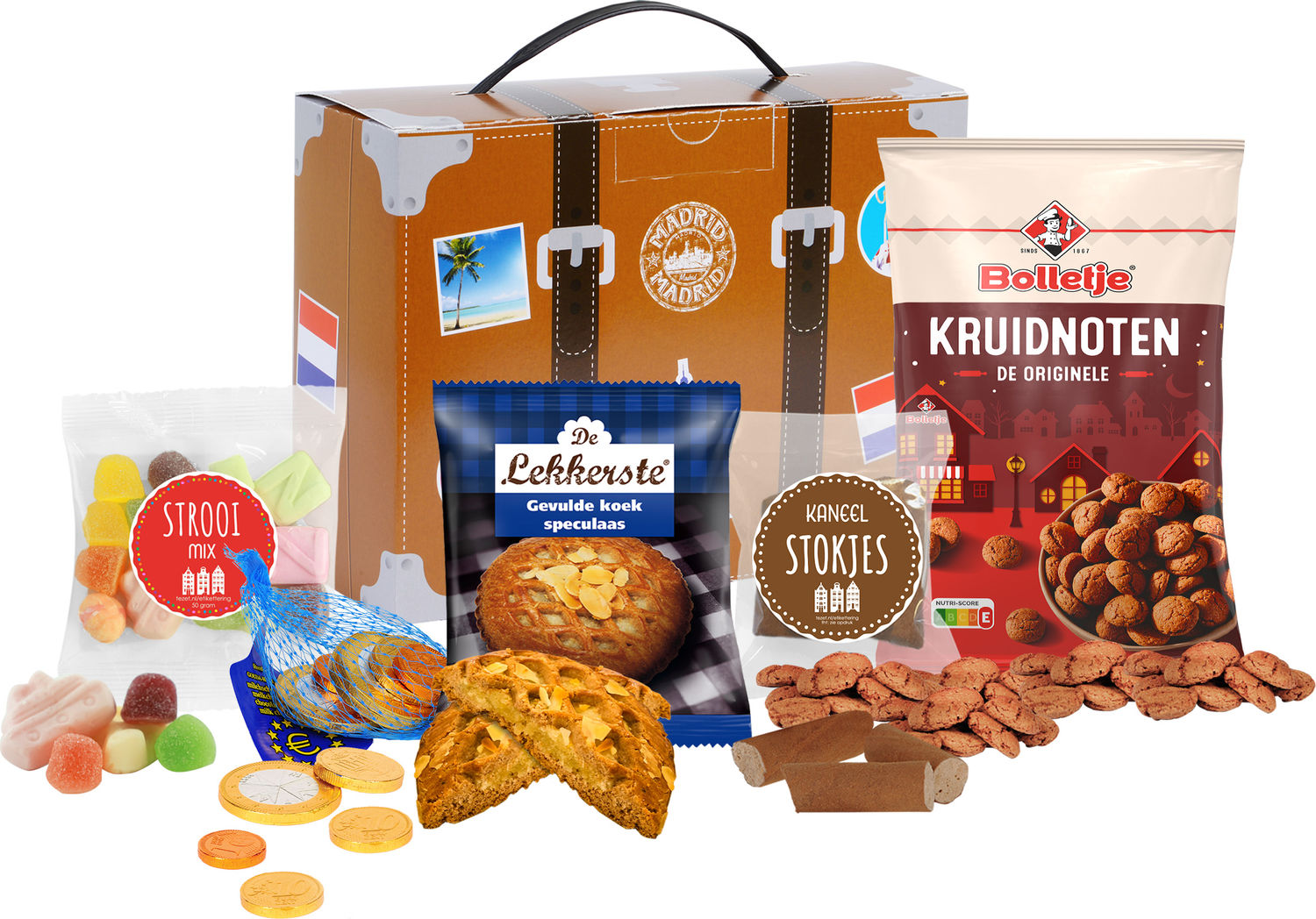 - Mooi kartonnen Sintkoffertje (21,5 x 16 x 8 cm) gevuld met: