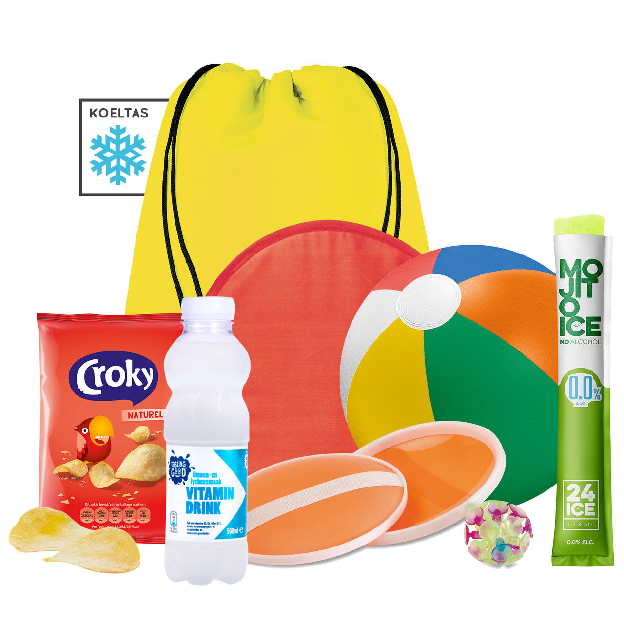 Handige zomer gele koelrugtas (41,5 x 32,5 cm) gevuld met: